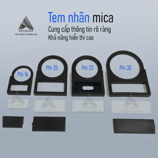 Tem nhãn Mica Nút Nhấn Phi 16, 22, 25, 30 – Đen: Giải pháp cho tủ điện chuyên nghiệp!