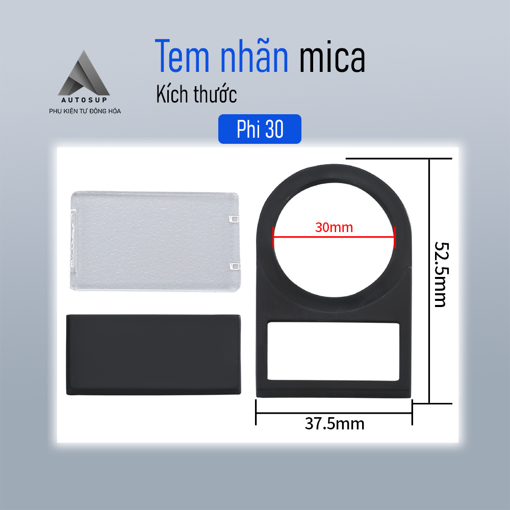 - Tên sản phẩm: Tem nhãn Mica Nút Nhấn Phi 16, 22, 25, 30 – Đen